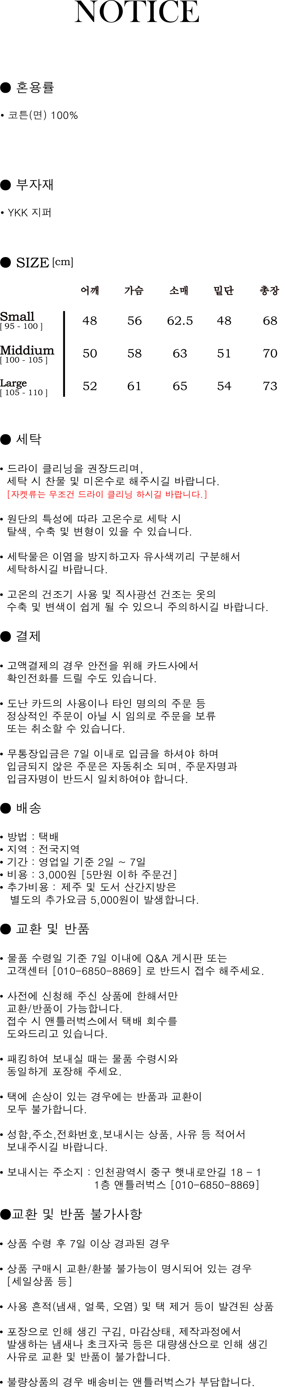 지퍼는 YKK 브랜드의 정품을 사용하였습니다.