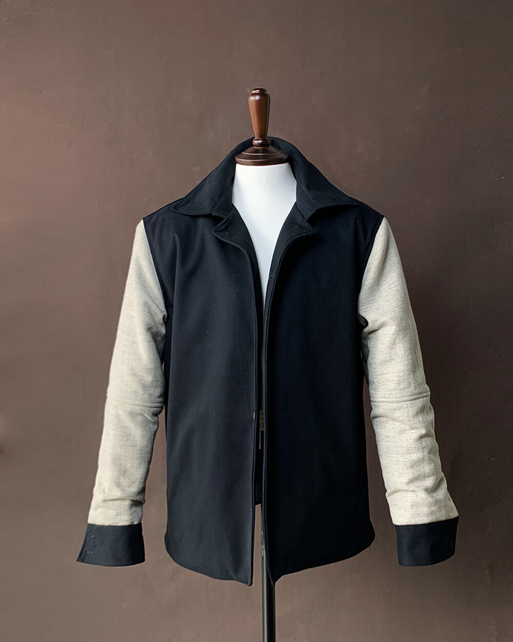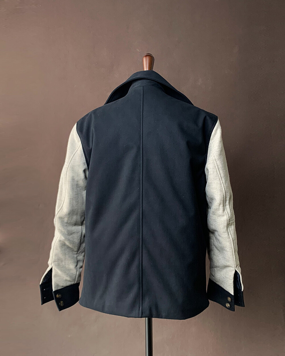 소매는 울모직의 원단의 배색으로