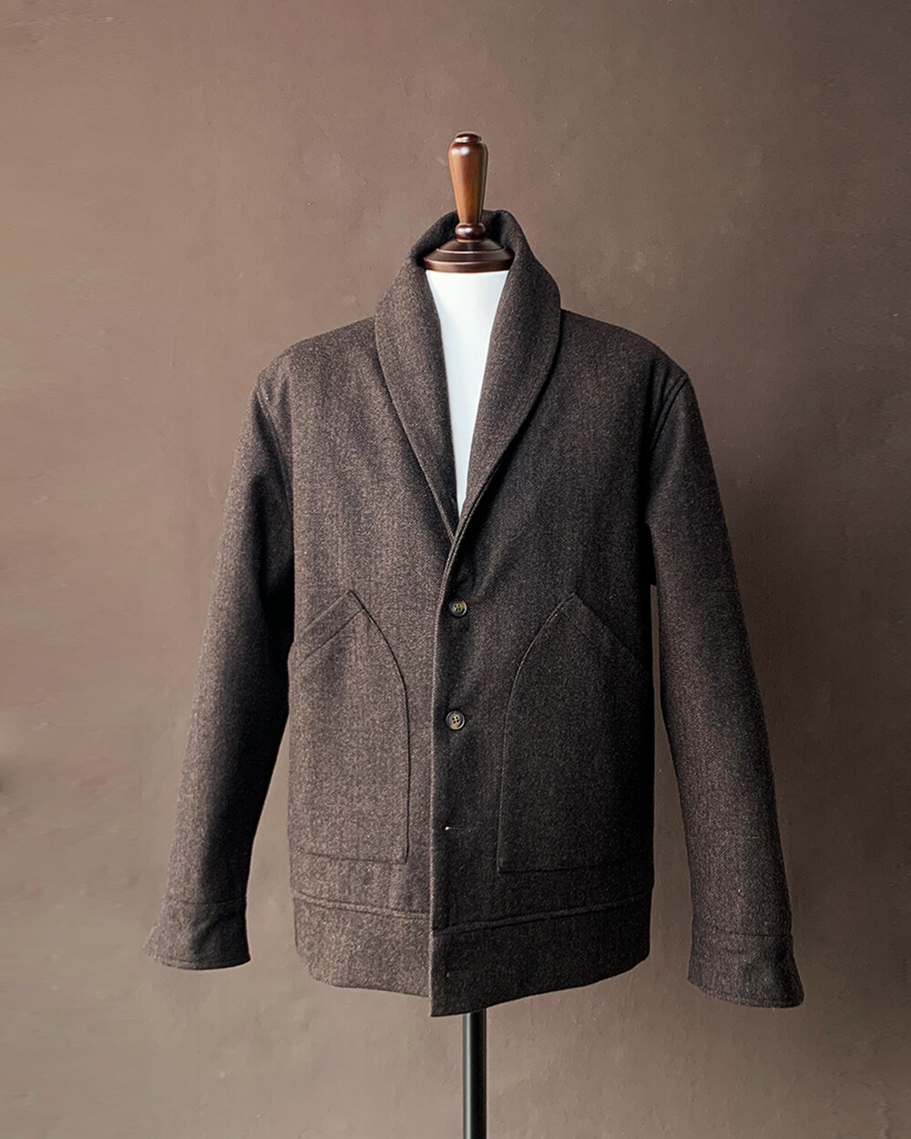 Herringbone Tailored Shawl Jacket [Brown]