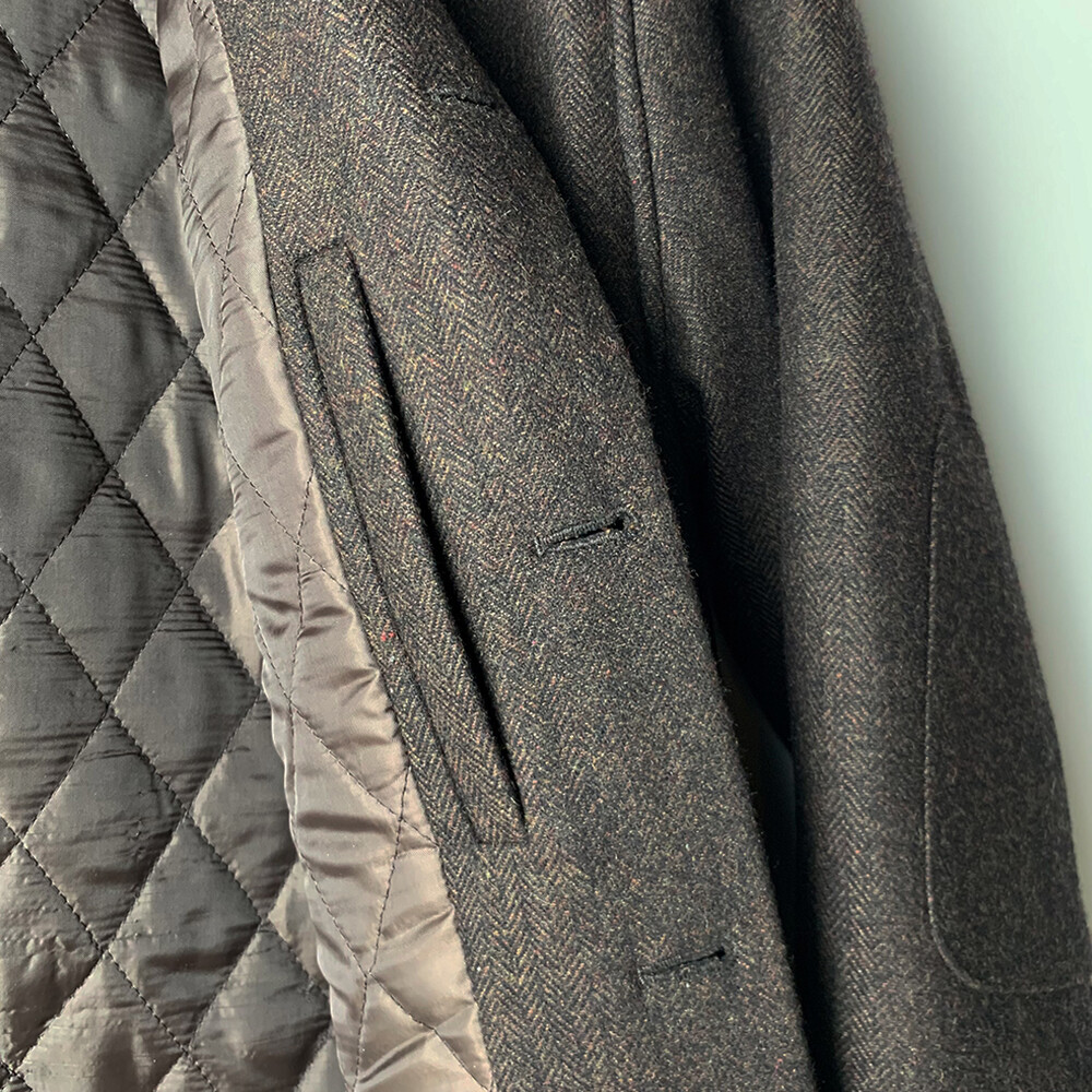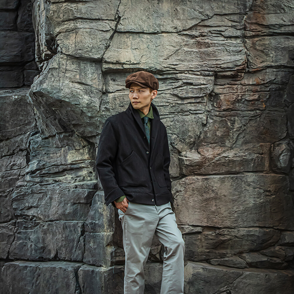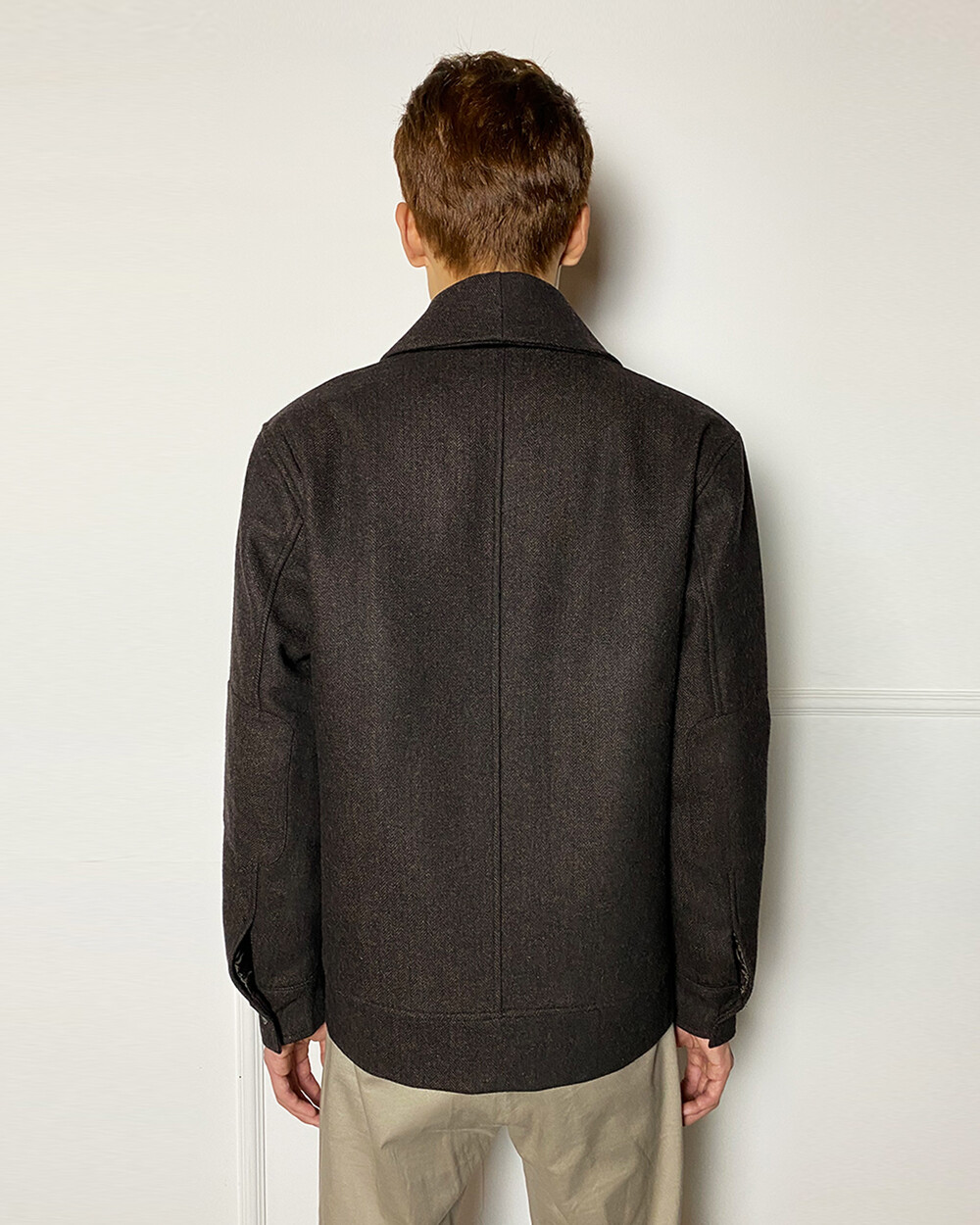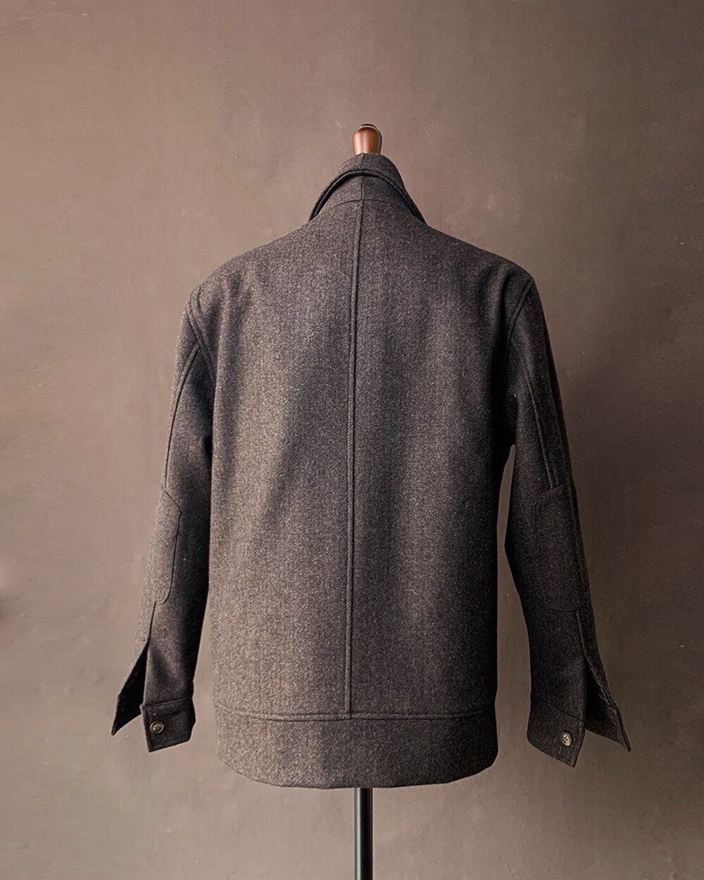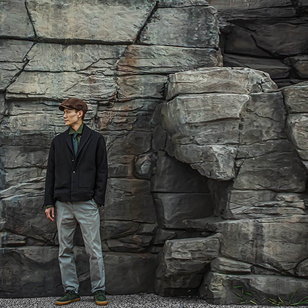 고중량의 헤링본 원단을 사용하여 투박하고,