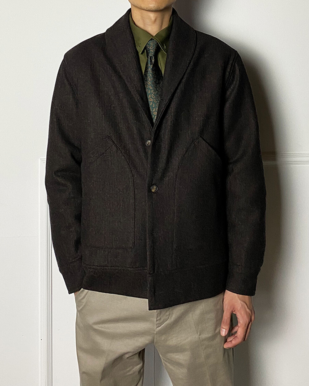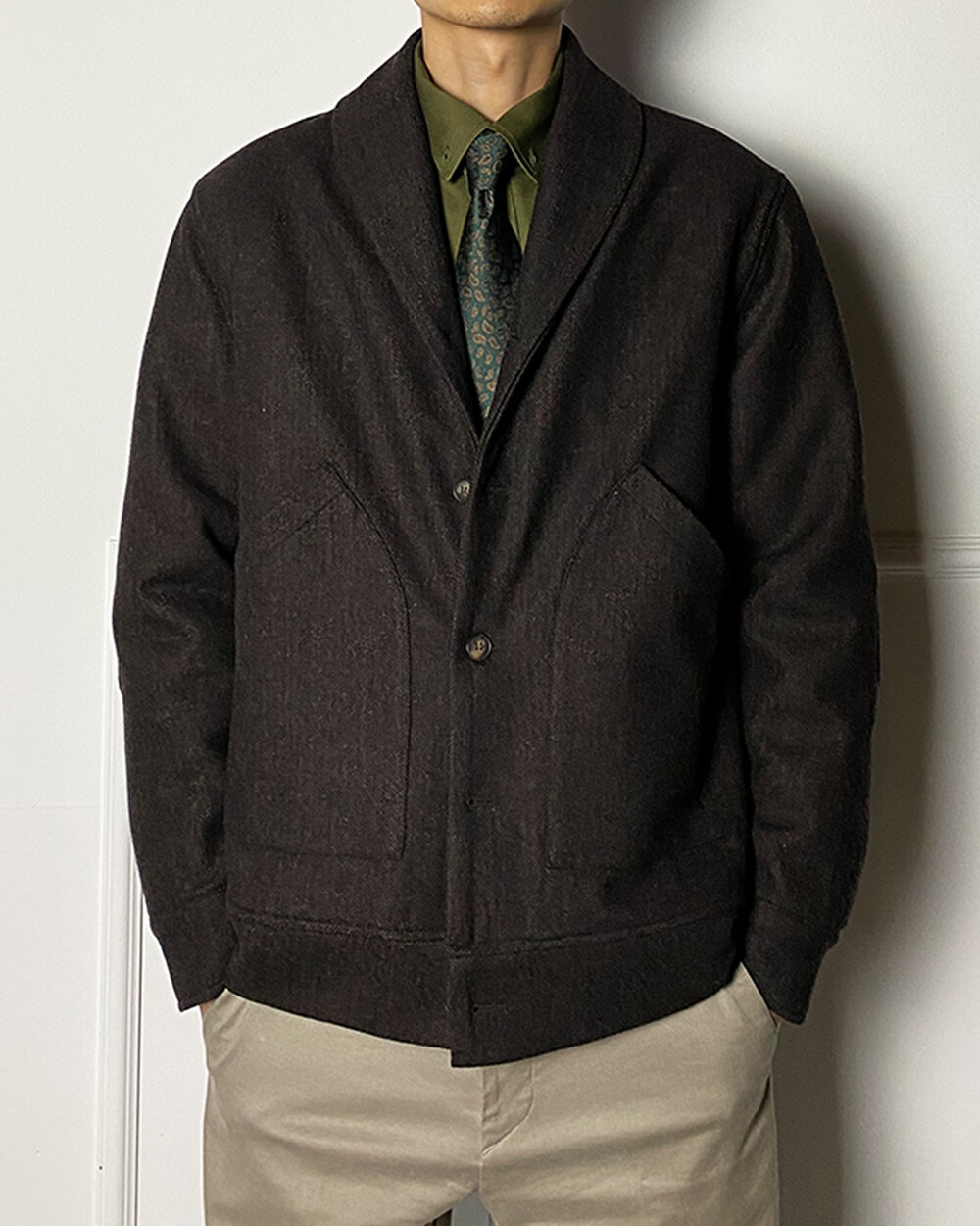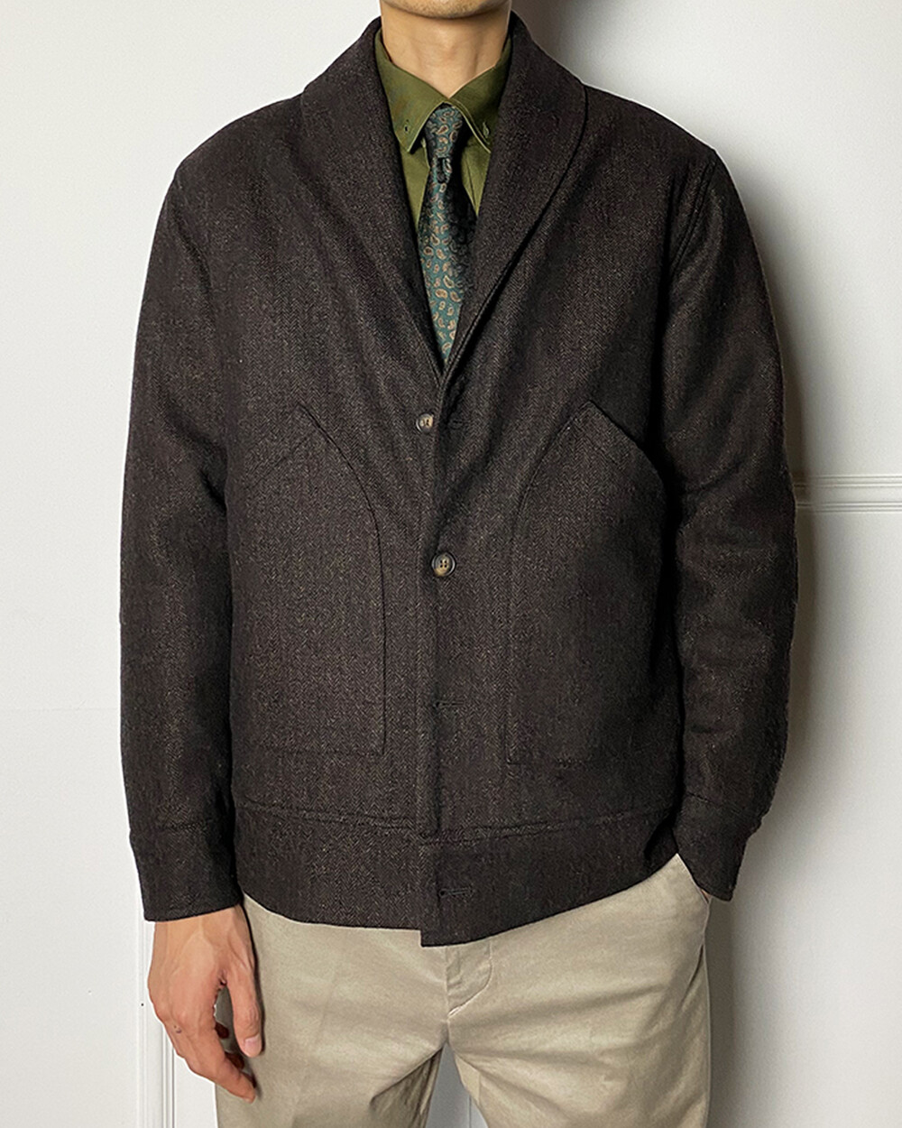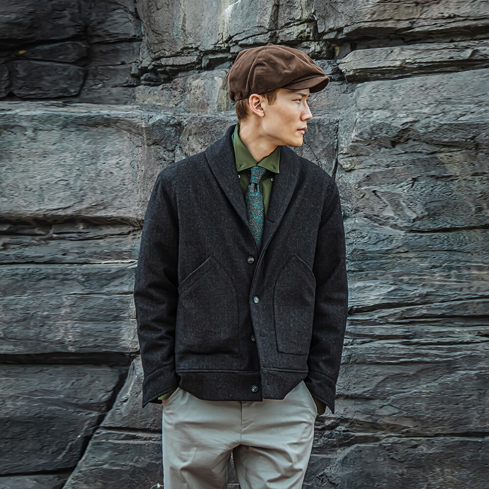 헤링본 테일러드 숄라펠 자켓은 과하지 않으면서