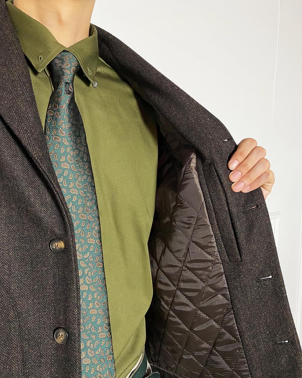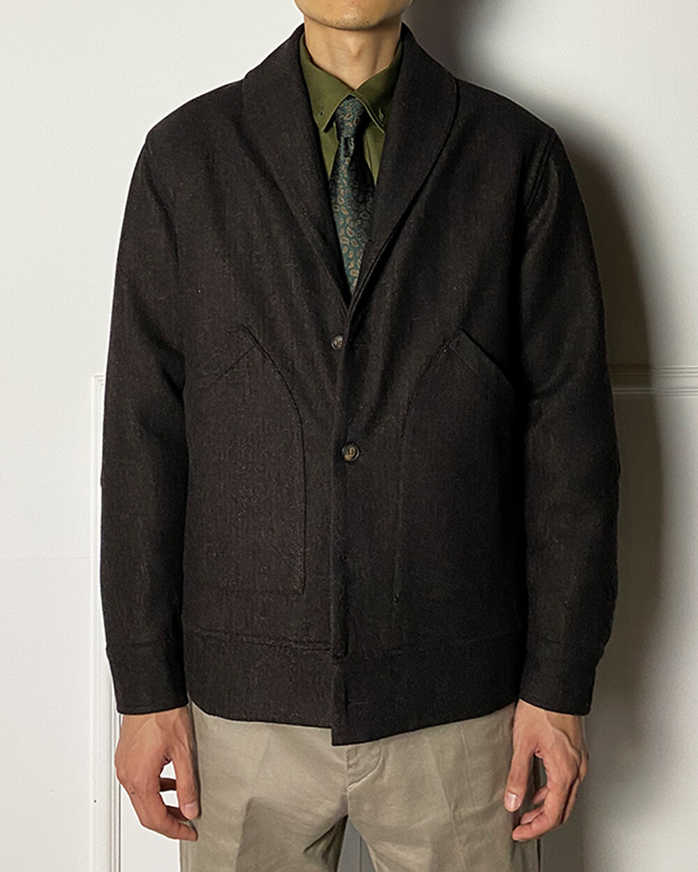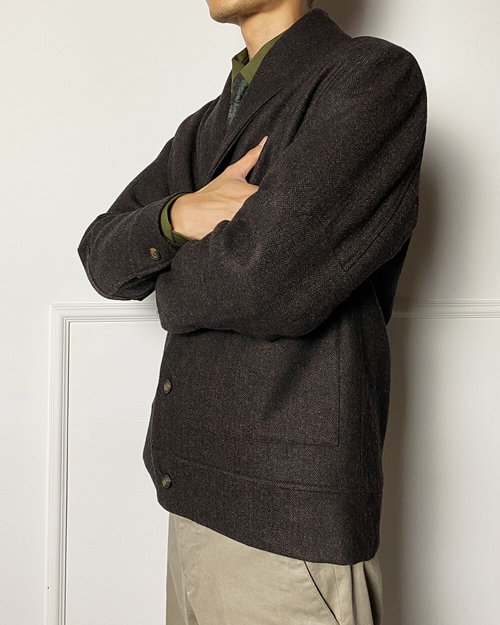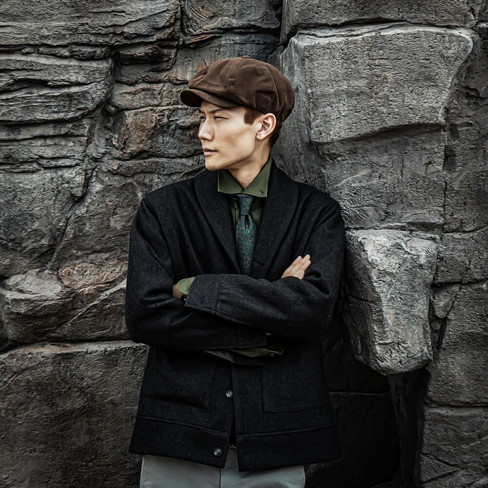 헤링본 테일러드 숄라펠 자켓은 과하지 않으면서