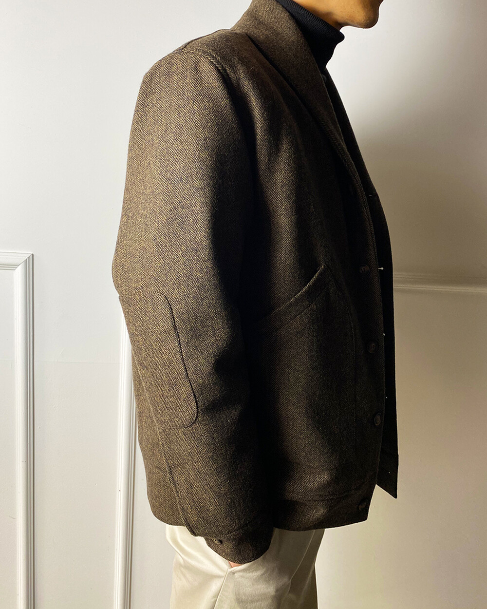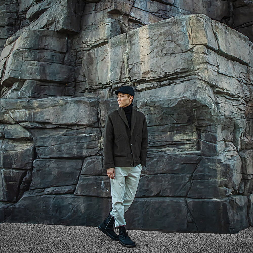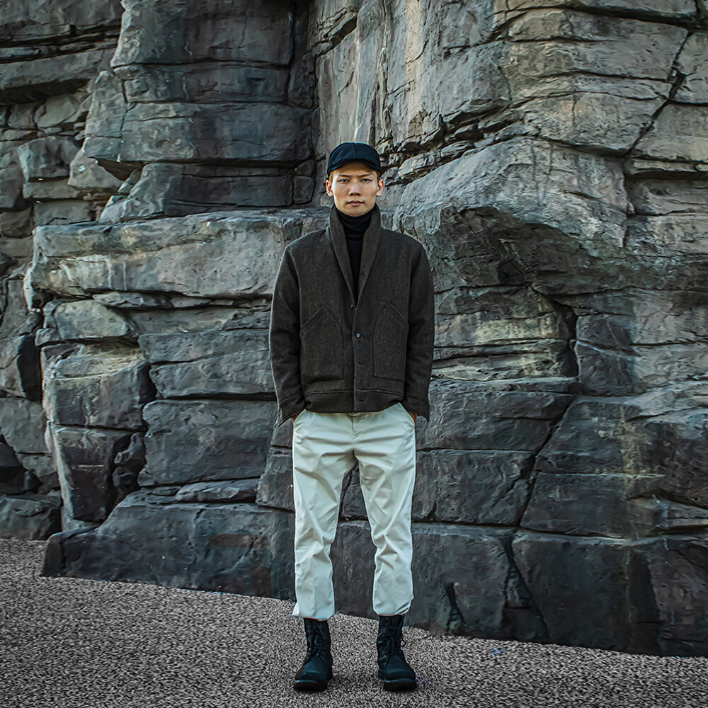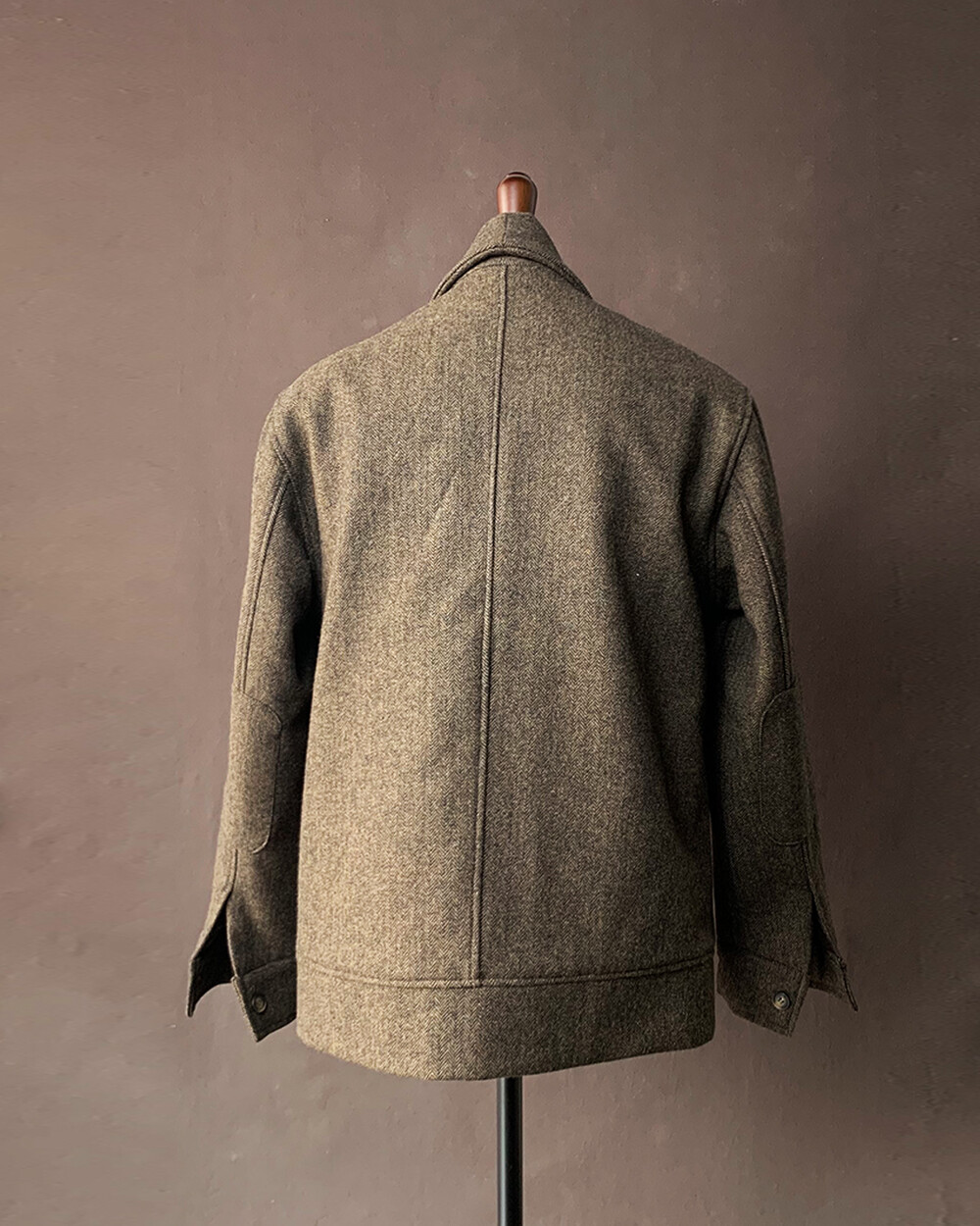 고중량의 헤링본 원단을 사용하여 투박하고,