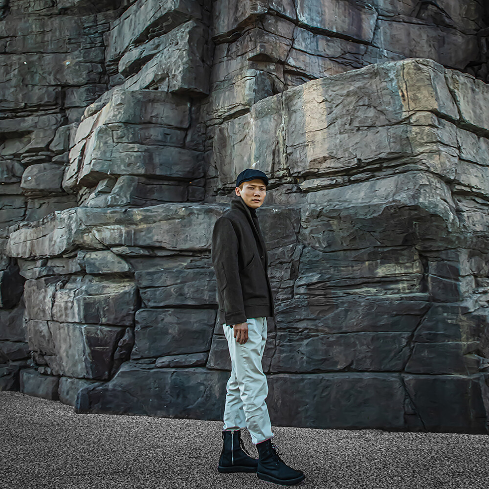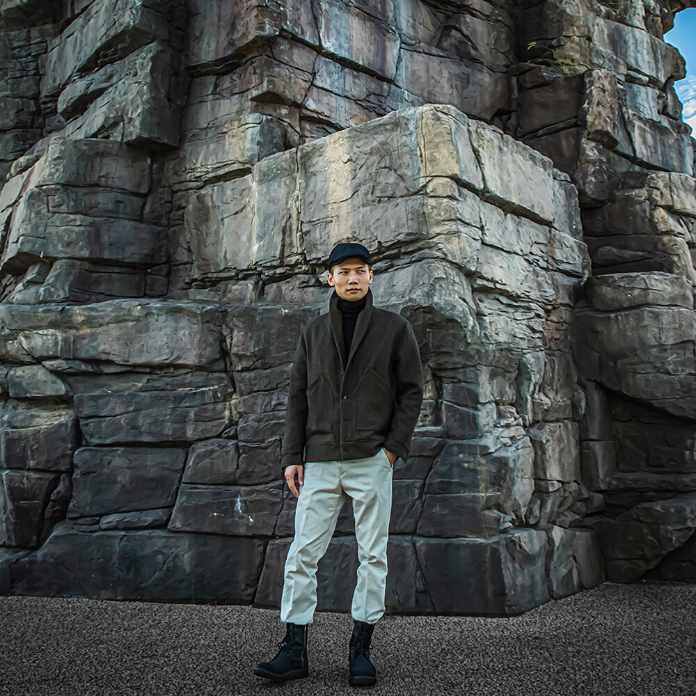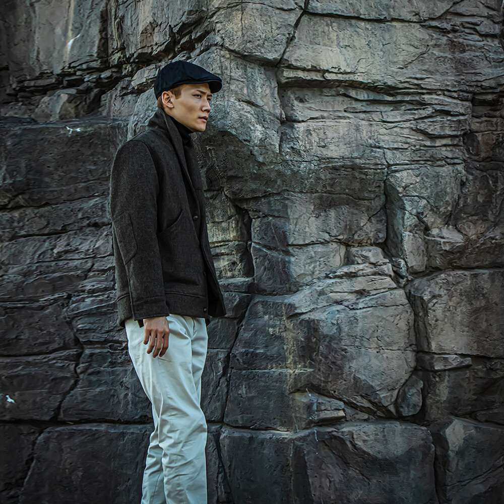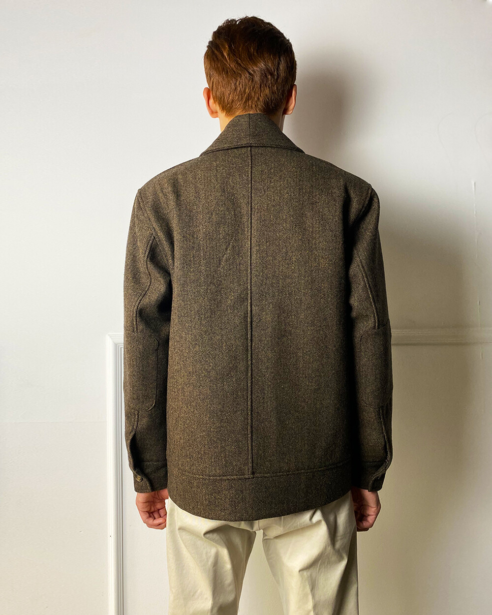 고중량의 헤링본 원단을 사용하여 투박하고,