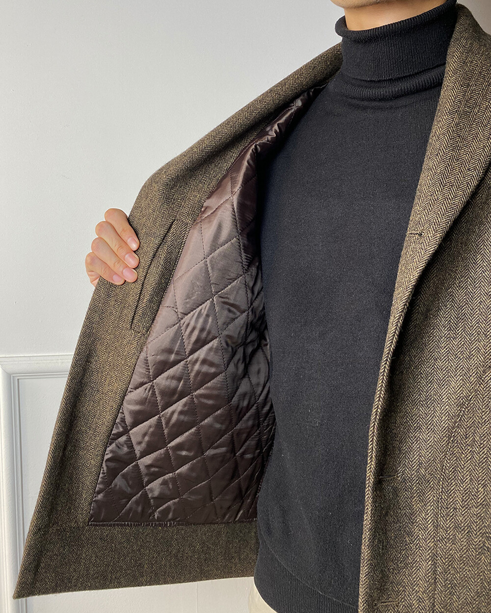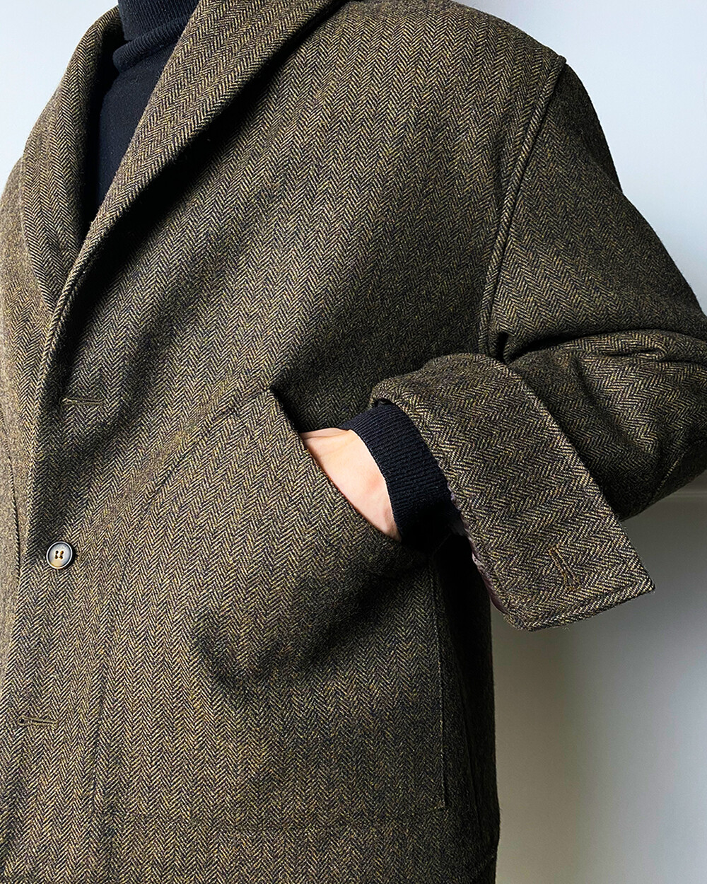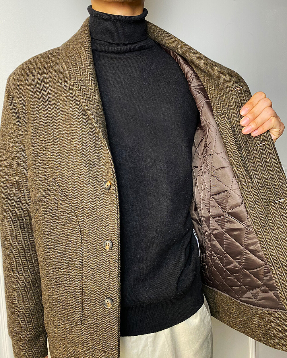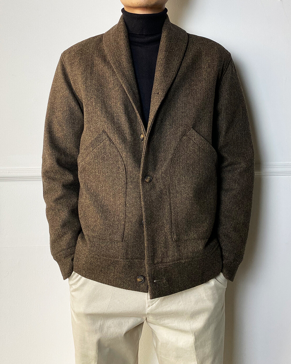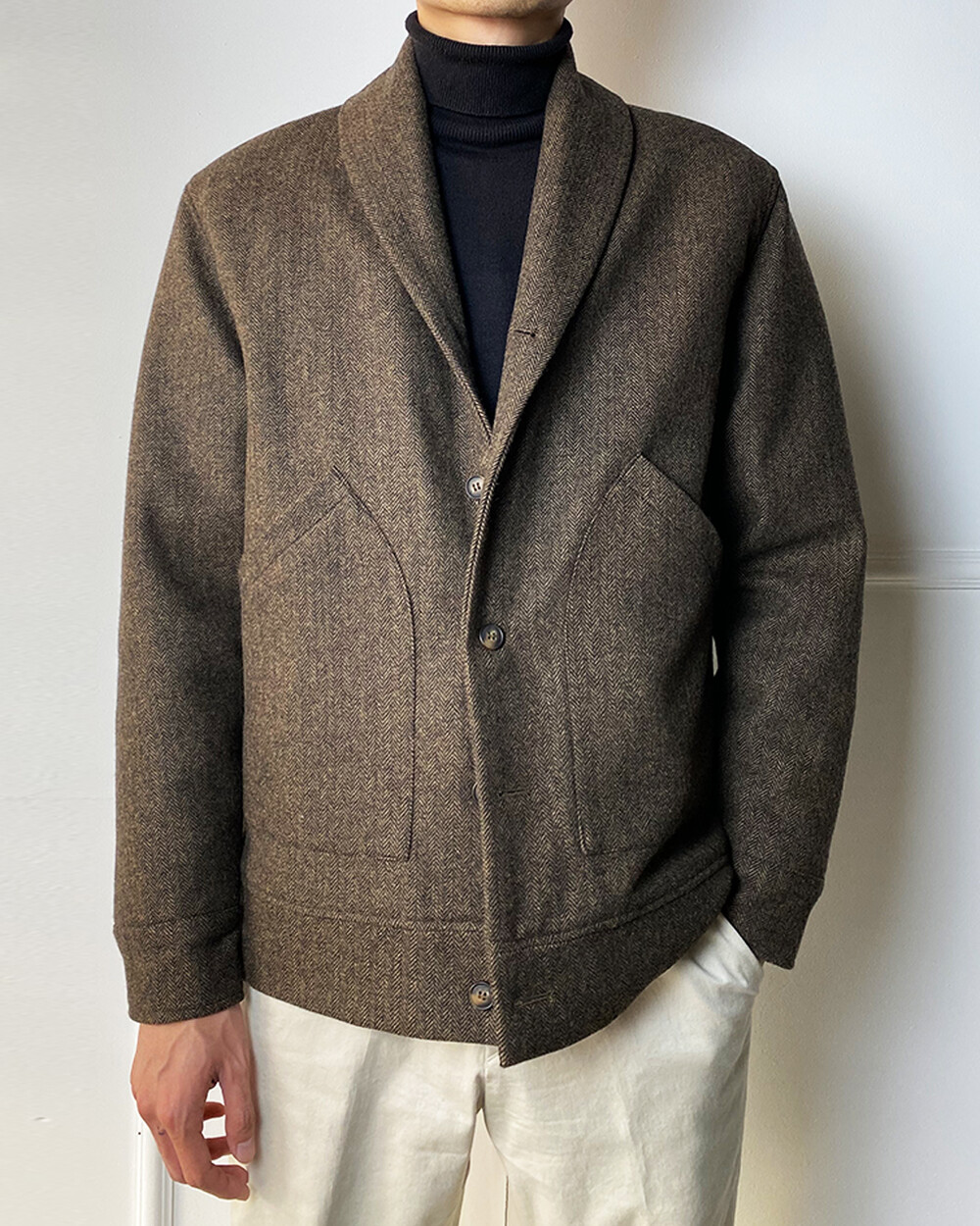 헤링본 테일러드 숄라펠 자켓은 과하지 않으면서
